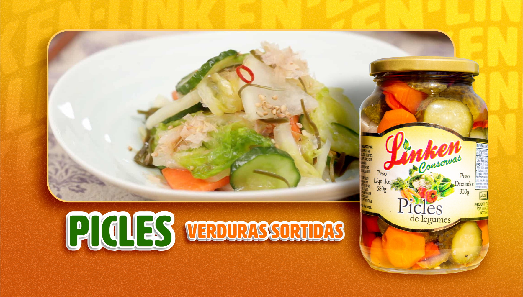 Legumes fatiados, água, vinagre, sal e açúcar.