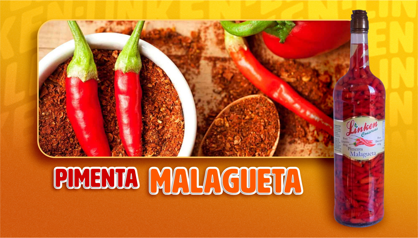 Pimenta malagueta, água, vinagre e sal.